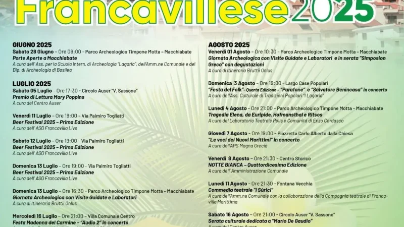 Programma Estate Francavilla Marittima 2025 il cartellone delle manifestazioni estive a Francavilla Marittima